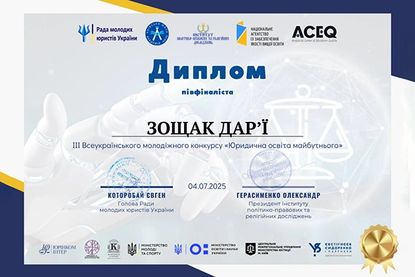 З 30.04-04.07.2025 проходив ІІІ Всеукраїнський молодіжний конкурс «Юридична освіта майбутнього». Організаторами Конкурсу виступили Рада молодих… Читати далі »Юридична освіта майбутнього