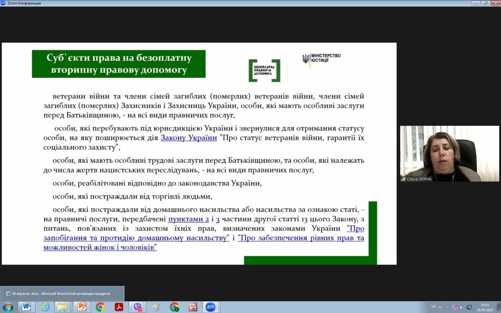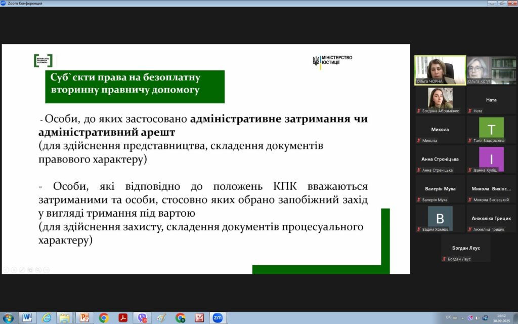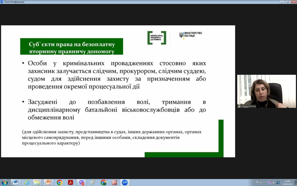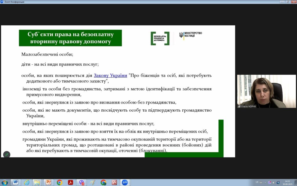 Ольга Чорна охарактеризувала зміст права на безоплатну вторинну правничу допомогу та детально окреслила коло суб’єктів, які мають на неї право.