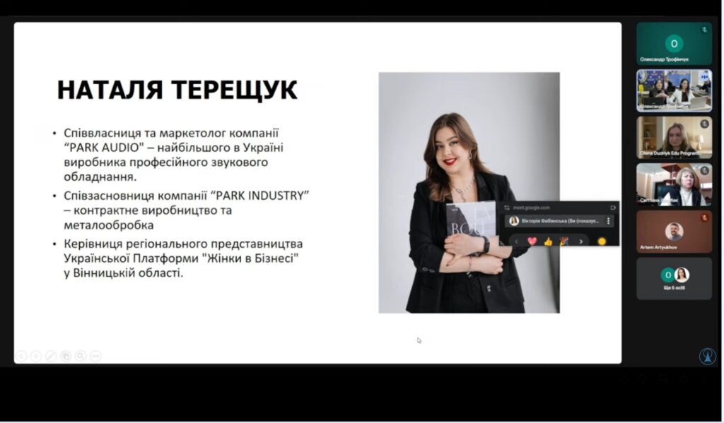 – Чесні правила гри: чому бізнес починається з доброчесності. Доповідач: Наталія ТЕРЕЩУК – співвласниця, маркетолог компанії ТОВ “Парк Аудіо ІІ”