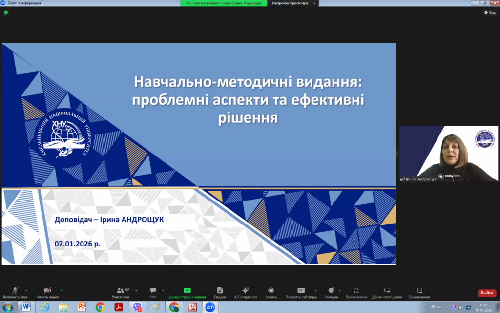 7 січня 2026 року викладачі кафедри права взяли участь у вебінарі «Навчально-методичні видання: проблемні аспекти та ефективні рішення».